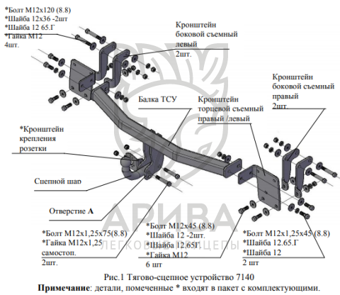 Конструкция ТСУ – разборная (преимущества разборной модели проявляются при монтаже на автомобиль, транспортировке и складировании).
