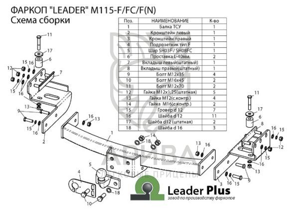 ( семиконтактной розеткой , монтажными проводами,крепежом, защитным колпачком и паспортом) и упакован в термоусадочную пленку. Для окраски фаркопа «Leader» используется полимернопорошковая краска с повышен-ной износоустойчивостью.