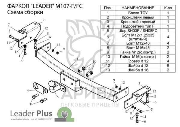 Фаркоп «Leader» легко устанавливается на штатные места автомобиля, предусмотренные заводом-изготовителем,без сверления дополнительных отверстий в кузове. Снятия и подрезки бампера не требуется. Фаркоп «Leader» укомплектован всем необходимым для установки на автомобиль