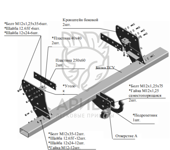 - не требуется сверлить отверстия в кузове автомобиля, используются отверстия в лонжеронах, предусмотренные изготовителем.