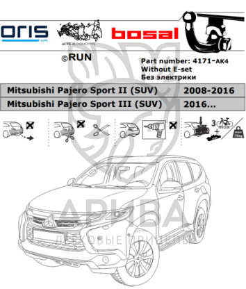 Фаркоп Митсубиси (Mitsubishi) Pajero Sport 2 2008-2016, (Mitsubishi) Pajero Sport 3 2016- (быстросъемный шар) 4171-AK4