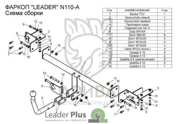 Фаркоп «Leader» легко устанавливается на штатные отверстия автомобиля , предусмотренные заводом-изготовителем. Для установки фаркопа необходимо демонтировать бампер. Подрезка бампера требуется.