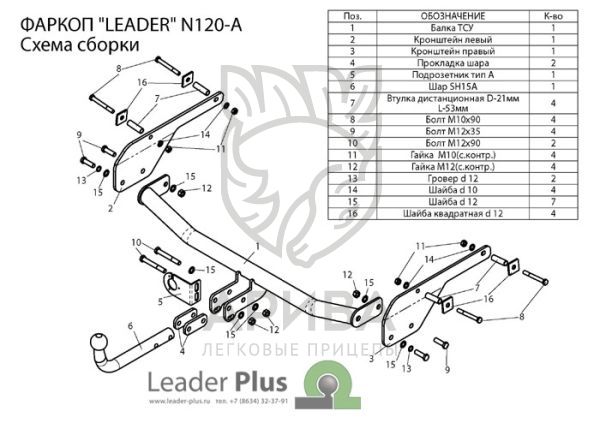 Фаркоп «Leader» легко устанавливается на штатные отверстия автомобиля , предусмотренные заводом-изготовителем без сверления дополнительных отверстий в кузове автомобиля. Снятия и подрезки бампера не требуется.