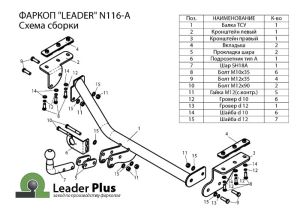 Фаркоп «Leader» легко устанавливается на штатные места автомобиля, предусмотренные заводом-изготовителем,без сверления дополнительных отверстий в кузове. Снятие бампера необходимо, подрезка бампера не требуется.
