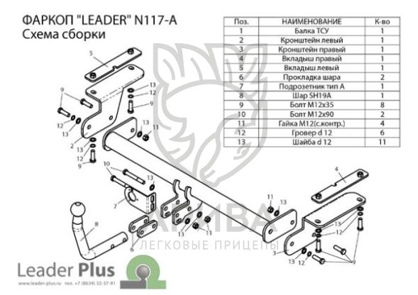 Фаркоп «Leader» легко устанавливается на штатные места автомобиля, предусмотренные заводом-изготовителем,без сверления дополнительных отверстий в кузове. Снятие бампера необходимо, подрезки бампера не требуется.