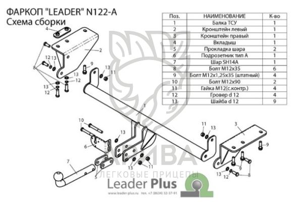Фаркоп «Leader» легко устанавливается на штатные места автомобиля, предусмотренные заводом-изготовителем,без сверления дополнительных отверстий в кузове. Снятие бампера необходимо, подрезки бампера не требуется.
