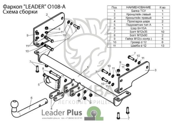 Фаркоп «Leader» легко устанавливается на штатные места автомобиля, предусмотренные заводом-изготовителем,без сверления дополнительных отверстий в кузове. Снятия и подрезки бампера не требуется . Фаркоп «Leader» укомплекто-ван всем необходимым для установки на автомобиль ( семиконтактной розеткой , монтажными проводами, крепежом , защитным колпачком и паспортом) и упакован в термоусадочную пленку. Для окраски фаркопа «Leader» используется полимернопорошковая краска с повышенной износоустойчивостью.