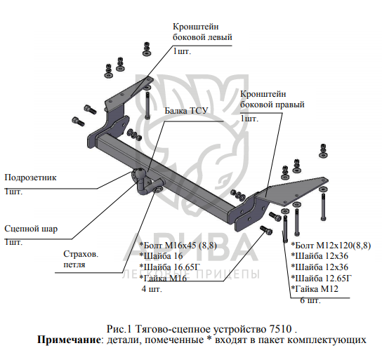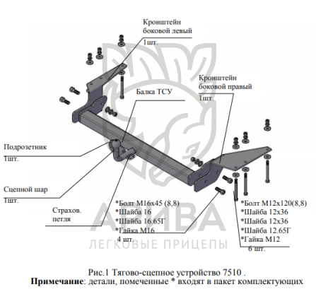Конструкция ТСУ – разборная, (преимущества разборной модели проявляются при монтаже на автомобиль, транспортировке и складировании).