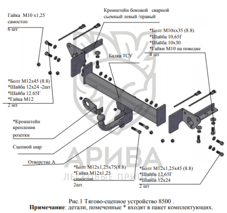Конструкция ТСУ – разборная, (преимущества разборной модели проявляются при монтаже на автомобиль, транспортировке и складировании).