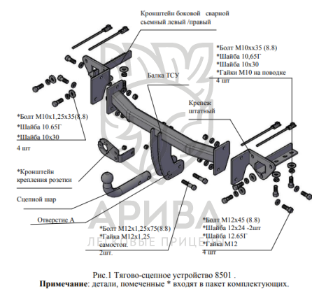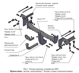 Конструкция ТСУ – разборная, (преимущества разборной модели проявляются при монтаже на автомобиль, транспортировке и складировании).