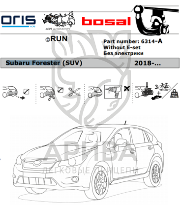 Купить Фаркоп Субару (Subaru) Forester V 2018- 6314-A в городах Казань, Уфа, Ижевск, Набережные Челны, Чебоксары по низким ценам. Большой выбор недорогих прицепов, фаркопов, автобоксов, запчастей для легковых прицепов. Быстрая доставка. Оригинальные товары, гарантия, рассрочка, распродажи, скидки и акции. Огромный ассортимент. Реальные отзывы покупателей