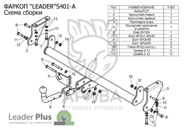 Фаркоп «Leader» легко устанавливается на штатные места автомобиля, предусмотренные заводом-изготовителем,без сверления дополнительных отверстий в кузове. Снятия и подрезки бампера не требуется . Фаркоп «Leader» укомплектован всем необходимым для установки на автомобиль ( семиконтактной розеткой , монтажными проводами, крепежом , защитным колпачком и паспортом) и упакован в термоусадочную пленку. Для окраски фаркопа «Leader» используется полимерно-порошковая краска с повышенной износоустойчивостью.