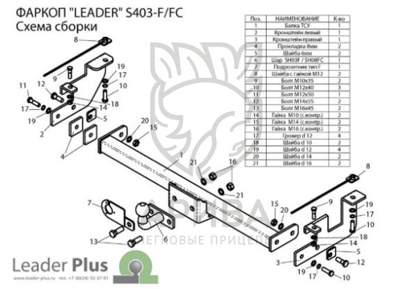 Фаркоп «Leader» легко устанавливается на штатные места автомобиля, предусмотренные заводом-изготовителем,без сверления дополнительных отверстий в кузове. Снятие бампера необходимо . Подрезки бампера не требуется . Фаркоп «Leader» укомплектован всем необходимым для установки на автомобиль ( семиконтактной розеткой , монтажными проводами, крепежом , защитным колпачком и паспортом) и упакован в термоусадочную пленку. Для окраски фаркопа «Leader» используется полимерно-порошковая краска с повышенной износоустойчивостью.