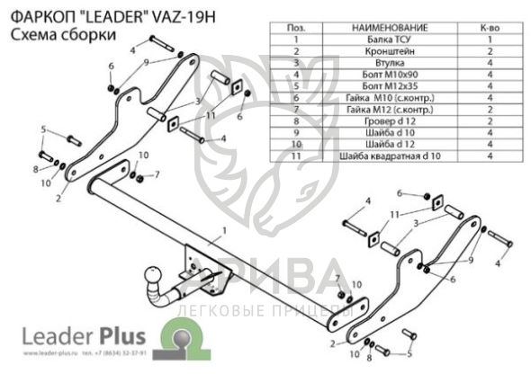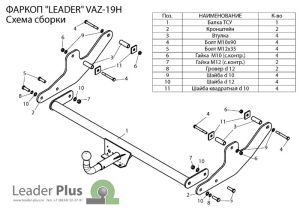 Фаркоп для ВАЗ Лада Ларгус (Lada Largus) 2012-, в т.ч. Largus Cross со сварным шаром T-VAZ-19H