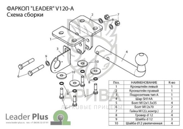 Фаркоп «LEADER» укомплектован всем необходимым для установки на автомобиль ( семиконтактной розеткой , монтажными проводами,крепежом, защитным колпачком и паспортом) и упакован в термоусадочную пленку. Для окраски фаркопа «LEADER» используется полимернопорошковая краска с повышенной износоустойчивостью.