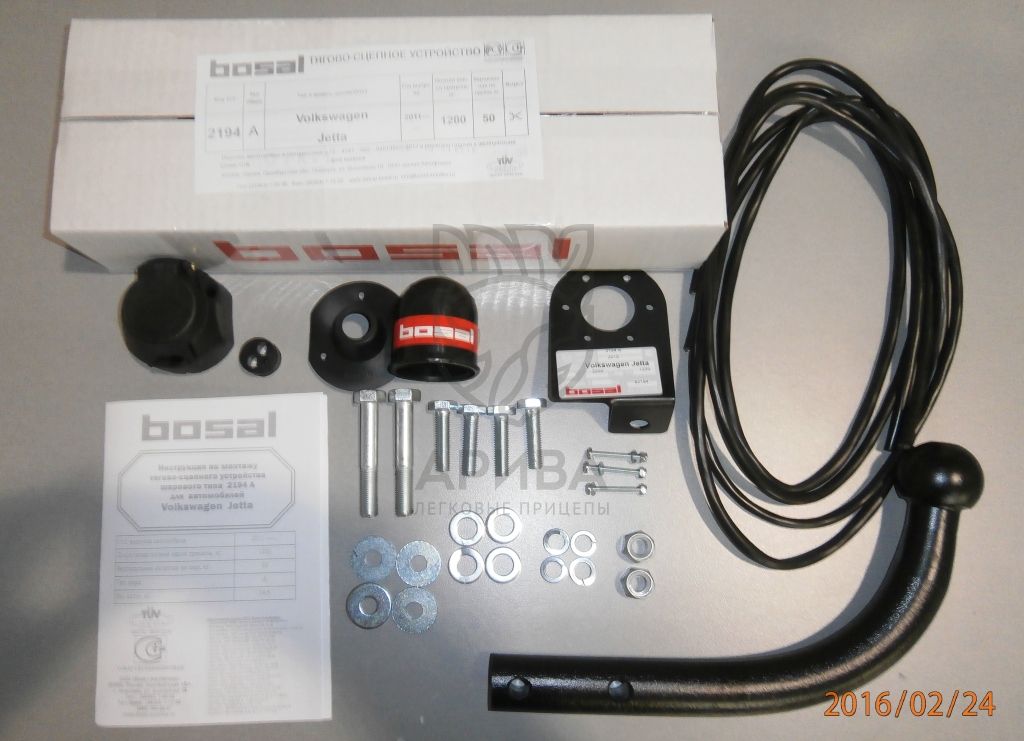 ТСУ крепится к лонжеронам автомобиля. Фаркоп «Bosal» укомплектован всем необходимым для установки на автомобиль (комплектом электрики, крепежом, защитным колпачком, кронштейном розетки и паспортом).