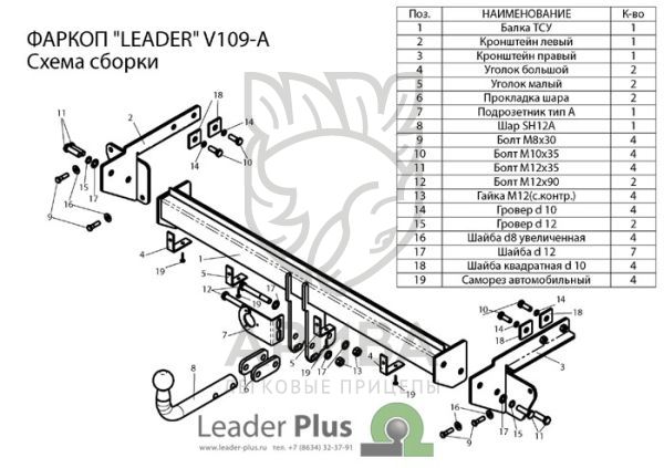 Конструкция фаркопа «Leader» позволяет заменить усилитель заднего бампера фаркопом , что положительно влияет на пассивную безопасность и не нарушает целостность конструкции автомобиля.