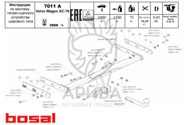 Купить Фаркоп Вольво (Volvo) XC60 2012-2017-, (Volvo) XC70 2007-2016 7011-A в городах Казань, Уфа, Ижевск, Набережные Челны, Чебоксары по низким ценам. Большой выбор недорогих прицепов, фаркопов, автобоксов, запчастей для легковых прицепов. Быстрая доставка. Оригинальные товары, гарантия, рассрочка, распродажи, скидки и акции. Огромный ассортимент. Реальные отзывы покупателей
