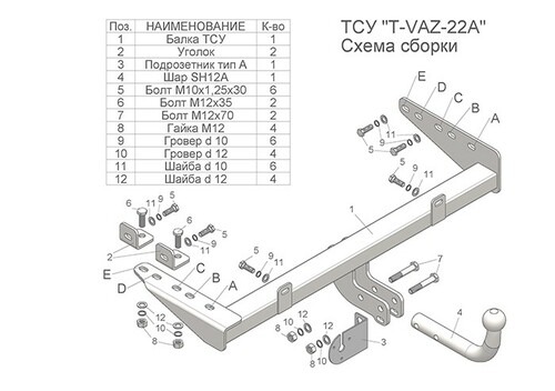 Фаркоп для Лада Калина Cross 2013-04/2016, 05/2016-, ВАЗ 2190/2191 Гранта седан/хетчбек 2011-03/2016, 03/2016-, Datsun On-Do 2014-03/2016, 03/2016- T-VAZ-22A