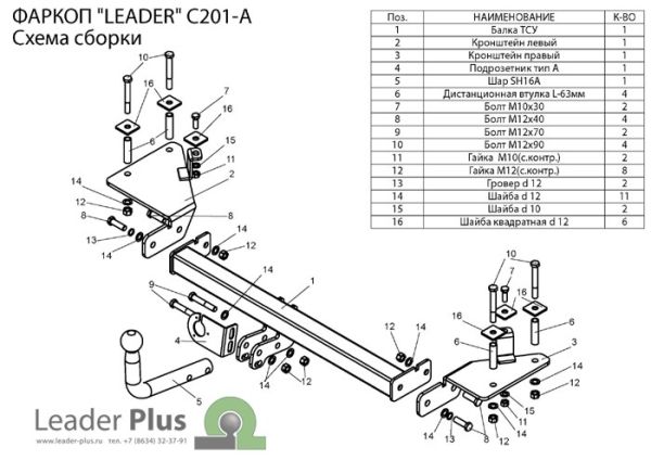 Фаркоп Lifan Solano 2010-2021, Lifan 620 2010-2021 условно-съемное крепление шара LF 01