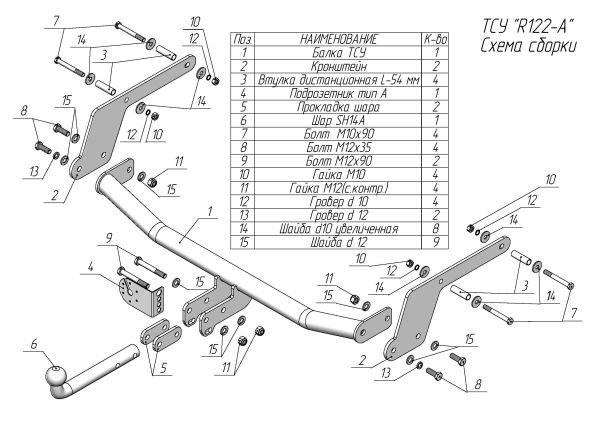 Фаркоп Лада Ларгус R90 универсал легковой 2012-, Лада Ларгус Кросс 2015- крепление шара на двух болтах 2011