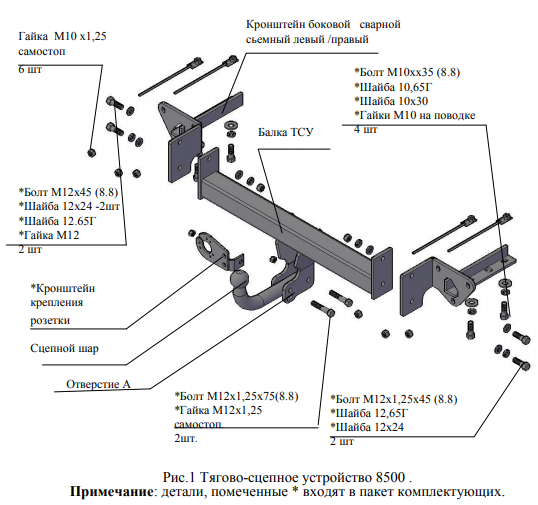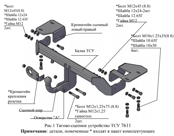 Фаркоп Лада Ларгус (Lada Largus) 2012-, Лада Ларгус Cross 2012- (возможно будет ограничен доступ к задней двери, с прицепом) 1231-A