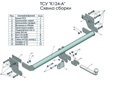 Фаркоп Киа (Kia) Sportage 4 рестайл 2018-2022, Hyundai Tucson рестайл, кроме авто с двигателем 2,4 л 2018-2021 с усл.-съемным крепл. шара на 2 болтах K124-A