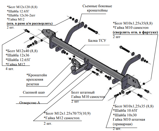 Фаркоп Kia Soul 2014-2019 съемное крепление шара на двух болтах 3275.12