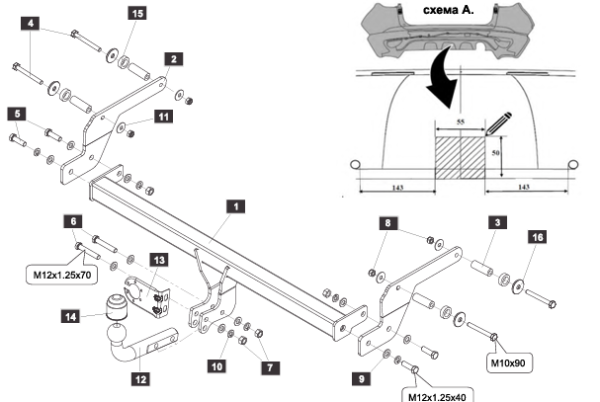 Фаркоп Иксид (Exeed) TXL 2024- (2-й рестайлинг) без подрезки бампера F.0211.005