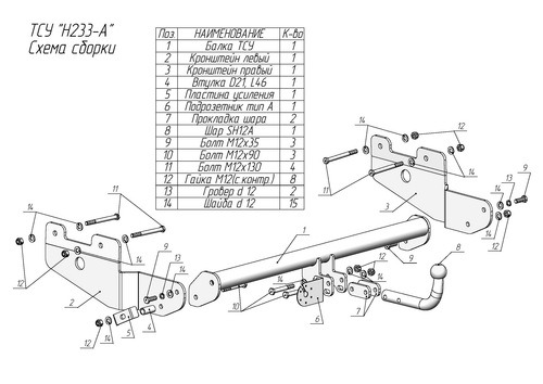 Фаркоп Газель NEXT бортовая 2016- фланцевое крепление шара GAZ-15
