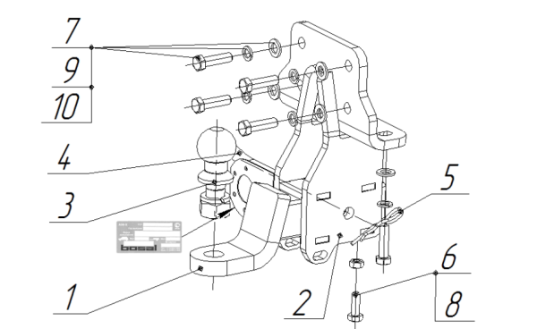 Фаркоп ГАЗ Valday 33104 2010- фланцевое крепление шара GAZ-13