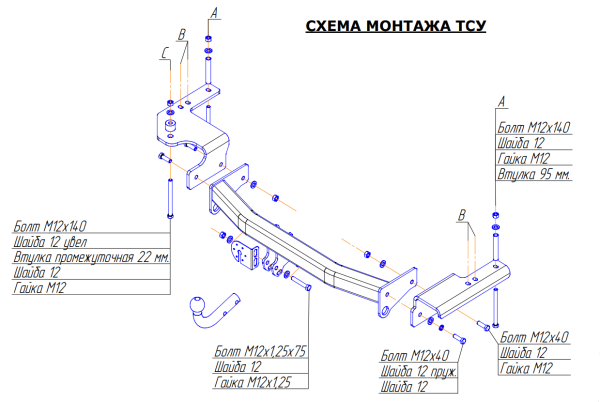 Фаркоп с оцинк.шаром на Citroen Spacetourer/Jumpy 2016-, Peugeot Traveller/Expert 2016-, Toyota Proace 2016-, Opel Zafira Life 2019-,Opel Vivaro 2019- 91602-A