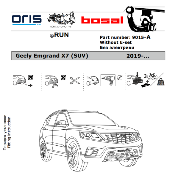 Фаркоп Джили (Geely) Emgrand X7 2019- 9015-A