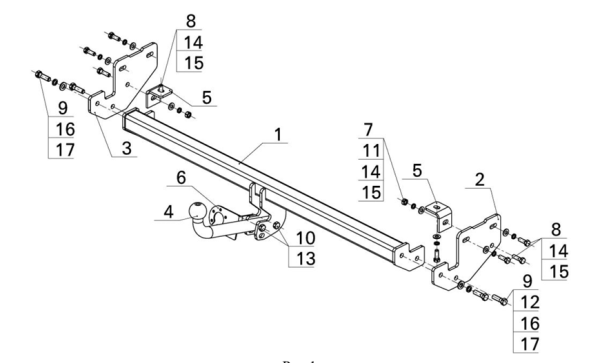 Фаркоп Лада Ларгус (Lada Largus) 2012- без снятия и подрезки бампера. Тип шара: A. Нагрузки: 1300/75 кг, (без электрики в комплекте) F.6011.003