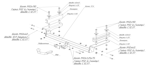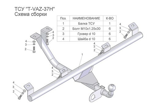 Фаркоп для ВАЗ 2123 Chevrolet Niva / Шевроле Нива / Шнива 1999-2020 со сварным шаром T-VAZ-37H