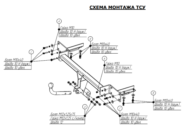 Фаркоп Лада Ларгус 2012- крюк на двух болтах G-L066