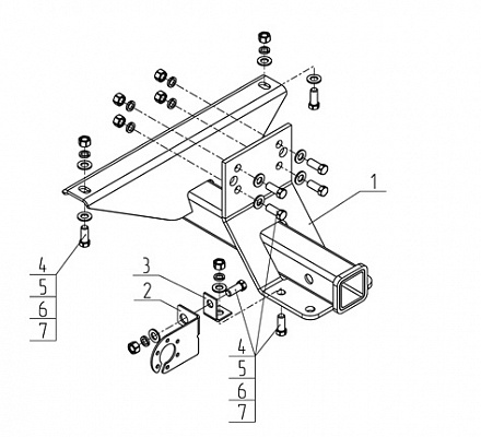 Фаркоп UAZ 469 1972-2011, UAZ Hunter 2001- съемное крепление шара на двух болтах 2987.12