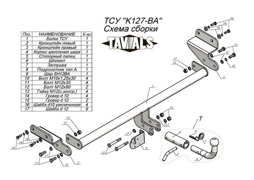 Фаркоп для Kia Cerato 2013-2018 без выреза бампера. Тип шара: C (оцинкованный, съемный). Нагрузки: 1300/75 кг, (без электрики в комплекте) K127-BA