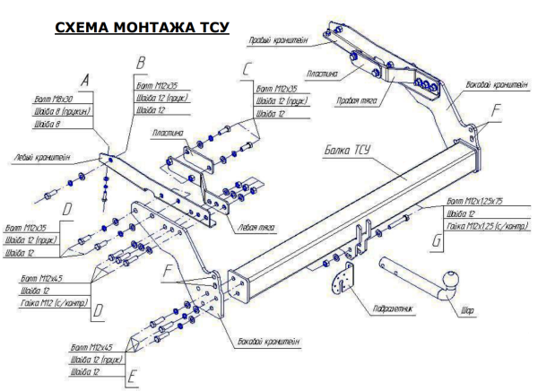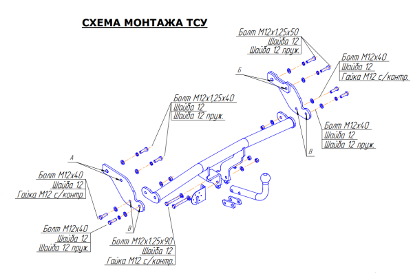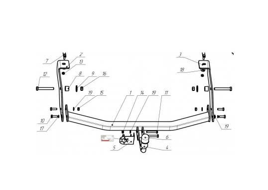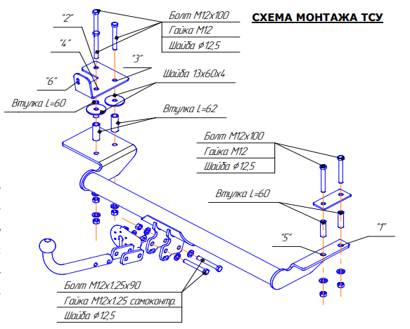 Фаркоп Дэу (Daewoo) Lanos седан 1997/5-, (Daewoo) Sens седан 1997/5-, Chevrolet Lanos седан 1997/5-, ZAZ SENS 2009-, ZAZ Chance седан 2009- 5206-A