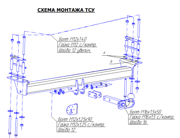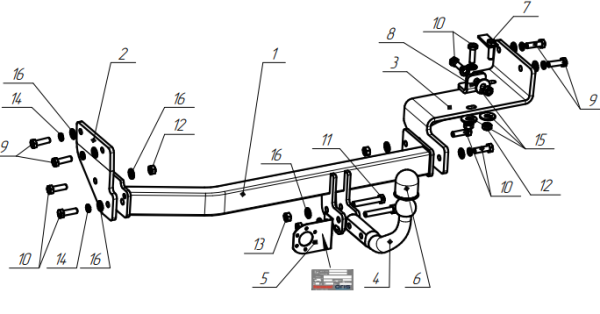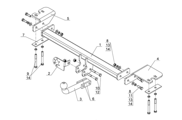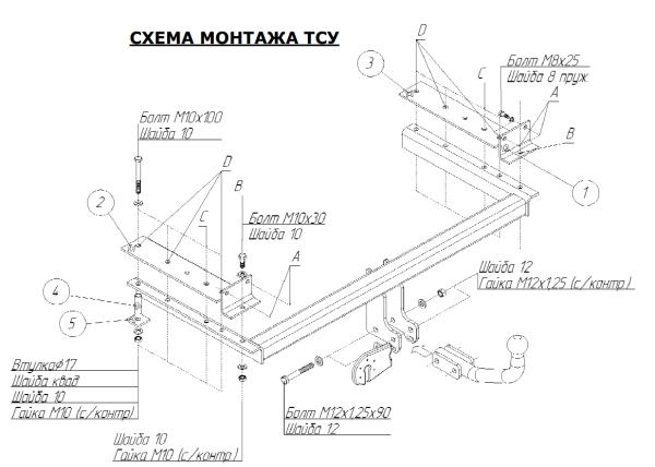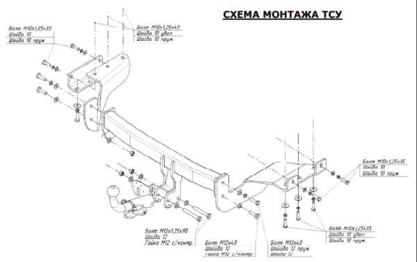 Фаркоп Zotye T600 2015-2021 съемное крепление шара на двух болтах 3963.12