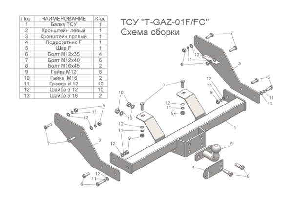Фаркоп для ГАЗ Газель 2705 (без снятия запасного колеса) 1994-2008 с кованым фланцевым шаром T-GAZ-01F