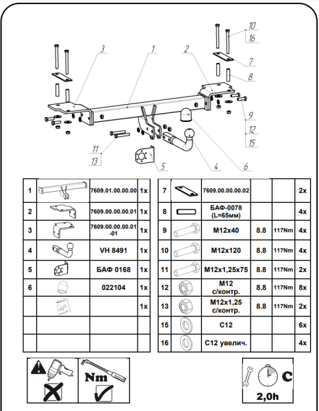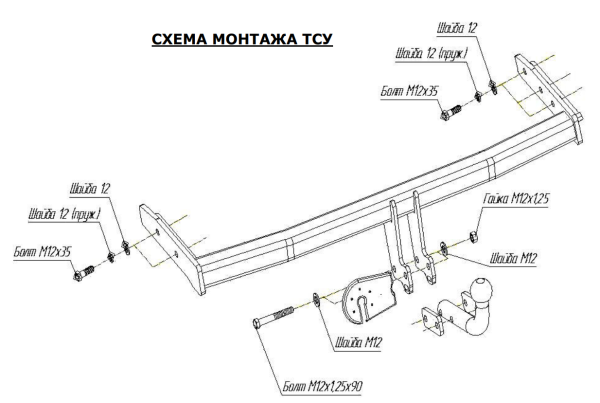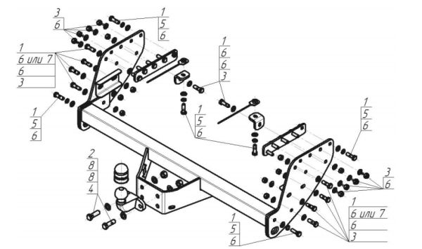 Фаркоп с оцинкованным шаром Mitsubishi L200 2007-2015 (кроме Long), L200 2015-, Fiat Fullback 2016- 91301-F
