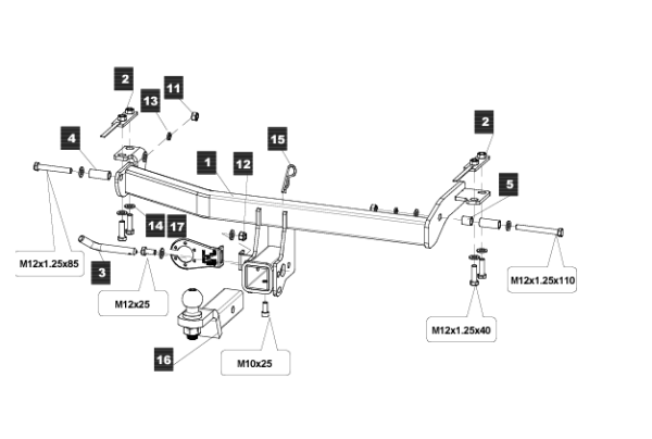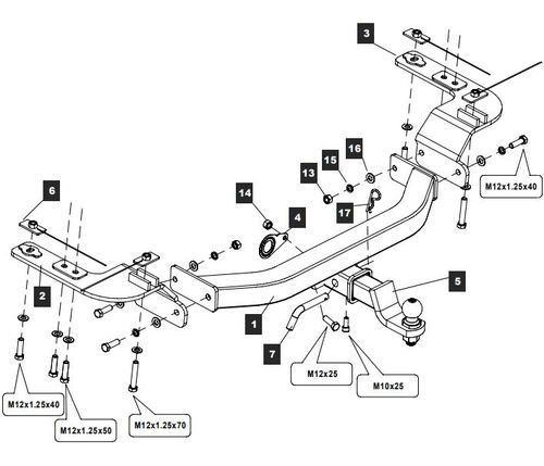 Фаркоп с оцинкованным шаром на Mercedes M-Class w164 2005-2012, w166 2012-2015, Mercedes GL-Class x164 2005-2012, x166 2012-2016 91205-A