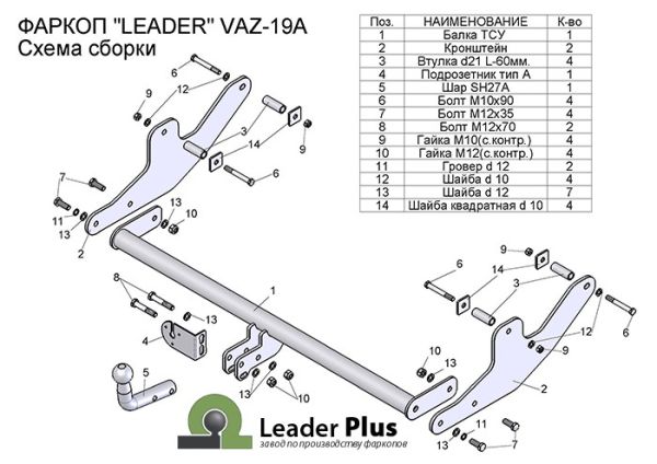 Фаркоп Лада Ларгус (Lada Largus) 2012-2022 (возможно будет ограничен доступ к задней двери, с прицепом), со съемным шаром T-VAZ-19A
