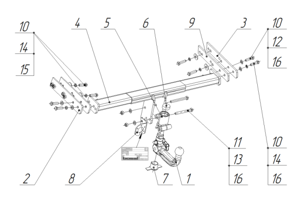Фаркоп BMW X3 F25, кроме X3M 2010-2017, BMW X4 F26, кроме X4M 2014-2018 B 16V