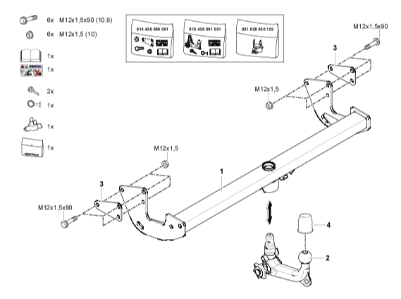 Фаркоп Mercedes M-Class w164 2006-2012, M-Class w166 2012-2019 с быстросъемным вертикальным креплением шара на ключе 313340600001