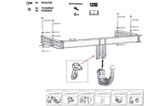 Фаркоп Audi A4 B8 2007-2015 седан/универсал, включая Quattro Sport, включая S-line, кроме RS / Audi A5 2009- купе/кабриолет, вкл.S-line, S5, кроме RSE 305571600001