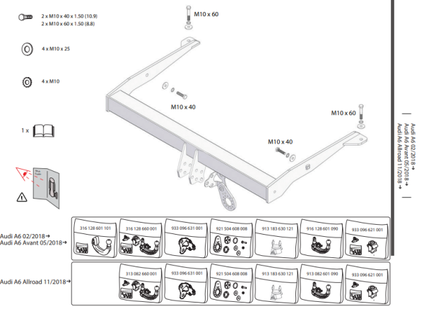 Фаркоп Audi A6 седан/универсал, в т.ч. Allroad 2018- с быстросъемным вертикальным креплением шара 305603600001