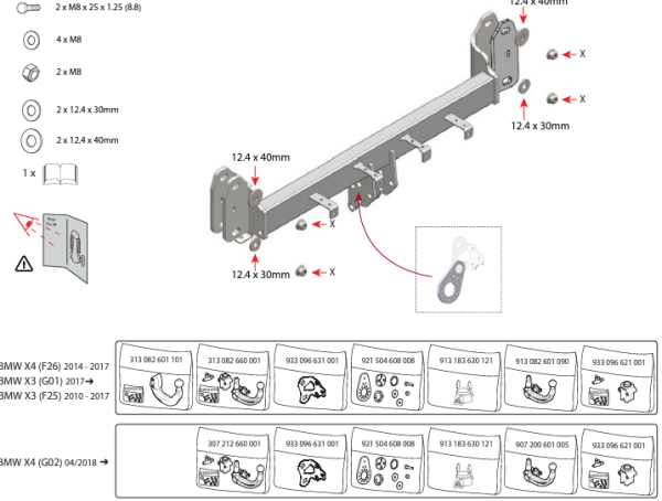 Фаркоп с электрикой 13-контактов на BMW X3 G01, включая M-Sport 2017-, BMW X3 F25 2010-2017, включая M-Sport, BMW X4 F26 2014-18.Невидимый вырез в бам 303496900113