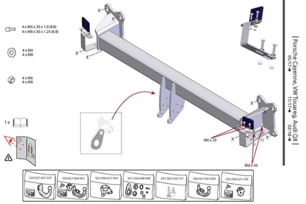 Фаркоп Volkswagen Touareg 2018-, Audi Q8 2018-, Audi SQ8 2020-, Porsche Cayenne 2017-, Porsche Cayenne Coupe 2019- с быстросъемным верт. крепл. шара 322064600001